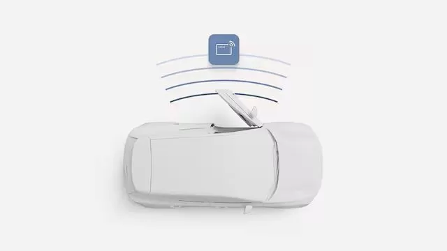 This smart wallet-sized key card gives you full access to the car. Simply keep the card in your wallet and you can unlock your car by swiping the card over an NFC reader in the roof pillar and then drive away by putting the card in its dedicated place in the wireless phone charger. When leaving the car, a swipe of the card over the NFC reader will lock the car.